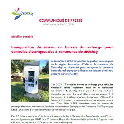 Communiqué de presse – Inauguration du réseau de bornes de recharge pour véhicules électriques des 8 communes du SIGERLy