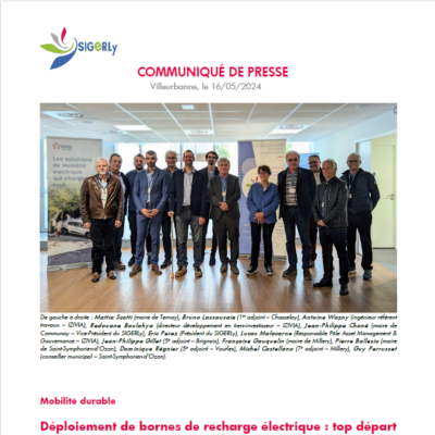 16 mai 2024 Communiqué de presse – Déploiement de bornes de recharge électrique : top départ pour 8 communes du SIGERLy